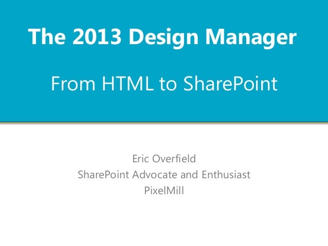Responsive Web Design for SharePoint 2013 2003 called and they want their crappy web design back. In the last ten years, so much has changed in the design.In diesem Video zeigen wir Ihnen, wie Sie das Design in SharePoint 2013 anpassen konnen. SharePoint 2013 Design manager – from HTML to SharePoint 1. From HTML to SharePoint Eric Overfield SharePoint Advocate and Enthusiast PixelMill The.